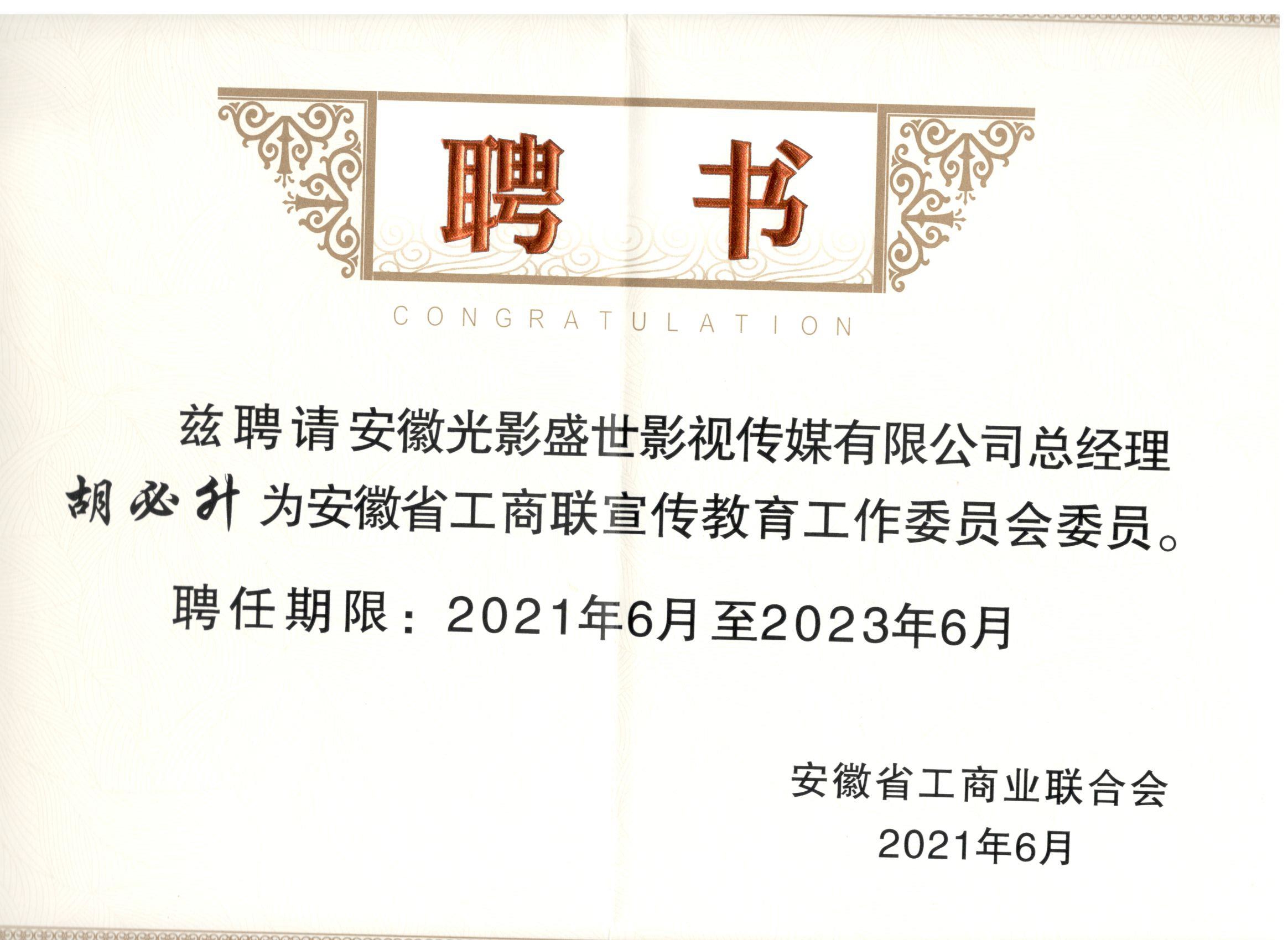 光影盛世傳媒被省工商聯(lián)聘為安徽省工商聯(lián)宣傳教育工作委員會(huì)委員單位 |